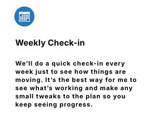 I’m in your corner the whole way. Through regular check-ups, we make sure the plan is working and adjust the route when life gets in the way. No guesswork—just a clear path to the result.